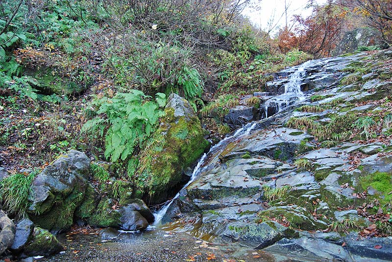 4合目付近で沢を右岸から左岸へ渡り、これから尾根登りになる。