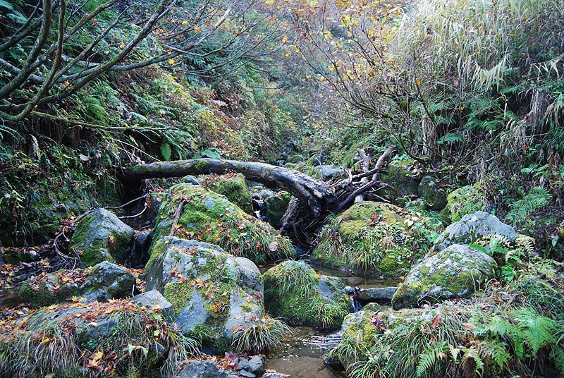 岩だらけの沢。水は少ない。