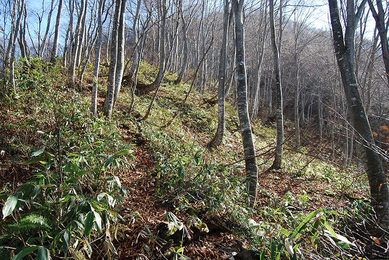 南側斜面のブナ林。
