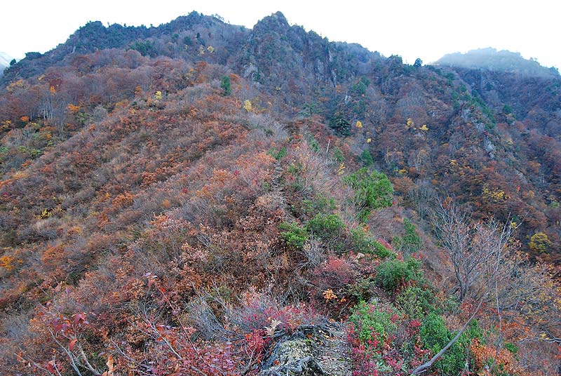 金城山〜割引岳へのヤブ尾根。