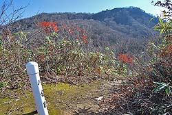 尾根道に出た。大月からの道(ほとんど廃道)と合流。