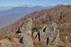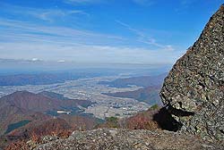 突然開けて山頂付近の岩場に出た。
